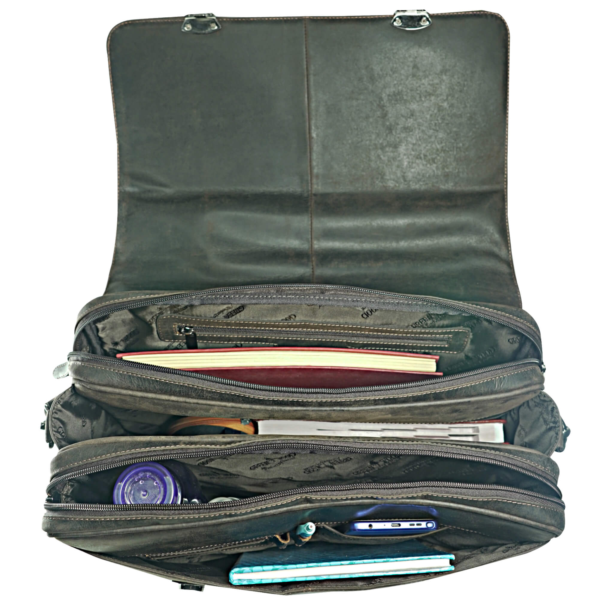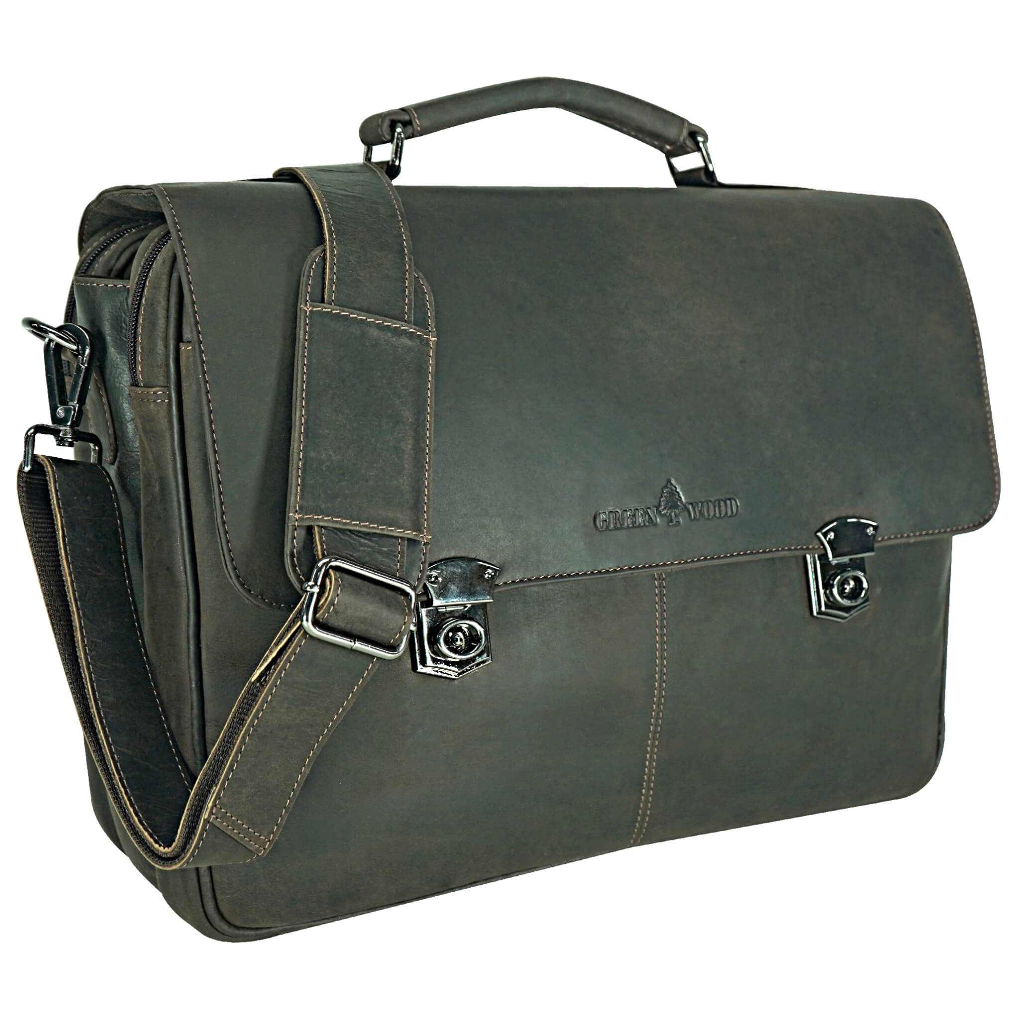 Leute mit Aktentaschen sehen nicht nur erfolgreich und wichtig aus, sondern sorgen auch stets für ein edles Auftreten. Besonders Aktentaschen für Herren aus Leder sind dabei sehr beliebt und sorgen in Kombination mit einem Vintage Look für einen absoluten Mehrwert für Ihr Aussehen. Dazu kommen die vielen verschiedenen Verwendungszwecke, die aus unseren Ledertaschen echte Allrounder machen. Neben Dokumenten und Unterlagen für wichtige Projekte können Sie unsere Taschen auch als klassische Laptoptaschen nutzen. Wir bei Greenwood probieren stets den Zeitgeist zu treffen und so eine schöne äußere Ästhetik mit einer großen Funktionalität zu vereinen. Besonders in der heutigen Zeit ist ein souveränes und stillvolles Auftreten wichtiger denn je. Egal ob auf Arbeit oder in der Uni – Unsere qualitativ hochwertigen Aktentaschen sorgen dafür, dass man Sie ernst nimmt! Wir bei Greenwood legen zusätzlich einen extrem hohen Wert auf die Herstellung und Verarbeitung unserer Taschen. Stabile Henkel und Tragegurte sorgen dafür, dass die Akten- und Laptoptaschen trotz hoher Belastung nicht reißen und Ihre Wertgegenstände sicher sind. Der Platz für diese ist zu Genüge vorhanden. Die einzelnen Fächer und der große Stauraum bieten genug Geräumigkeit, dass Sie nichts mehr Zuhause lassen müssen. Zusätzlich profitieren Sie von einem geringen Gewicht und abnehmbare und verstellbare Schultergurte. Dank dieses unglaublichen Tragekomforts können Sie Ihre Akten- bzw. Laptoptaschen nahezu problemlos überall mit hinnehmen. Zusammen mit Vintage Optik aus Leder werden Sie so zu einem Highlight in jedem Büro. Egal welche Lebenslage – mit den Akteschtaschen und Laptoptaschen von Greenwood haben Sie stets einen praktischen Begleiter. Die unterschiedlichen Größen und Modelle machen unsere Taschen zugänglich für nahezu jeden und sorgen mit ihrem extrem großen Fassungsvermögen dafür, dass nichts auf der Strecke bleibt. Geldbörse, Hygieneartikel oder Haustürschlüssel, alles findet seinen Platz. Dank unserer hochwertigen und gut verarbeiteten Verschlüsse ist Ihnen zudem eine hohe Sicherheit gewährt. Es werden sowohl Diebstähle präventiv verhindert, ebenso wie Situationen in denen es aufgrund von Hastigkeit und Eile dazu kommt, dass Gegenstände herausfallen könnten. Besonders durch den vielgefragten Vintage Look sind Ihnen die Blicke Ihrer Mitmenschen sicher. Zusammen mit der Leder Optik sorgen Sie so auch in Ihrer Freizeit für ein gepflegtes und stilvolles Aussehen. Die Multifunktionalität unserer Akten- und Laptoptaschen lässt Sie auch beim Einkaufen und bei Ausflügen nicht im Stich. Durch die unterschiedlichen Fächer können Sie zu jeder Zeit für Ordnung sorgen. Auch spontane Einkäufe oder längere Shoppingsauflüge sind so kein Problem mehr. Die Kombination aus Ästhetik und Funktionalität ist momentan viel gefragt. Lassen Sie sich Ihre Leder Akten- oder Laptoptasche für Herren im Vintage Look nicht entgehen und bestellen Sie noch heute!