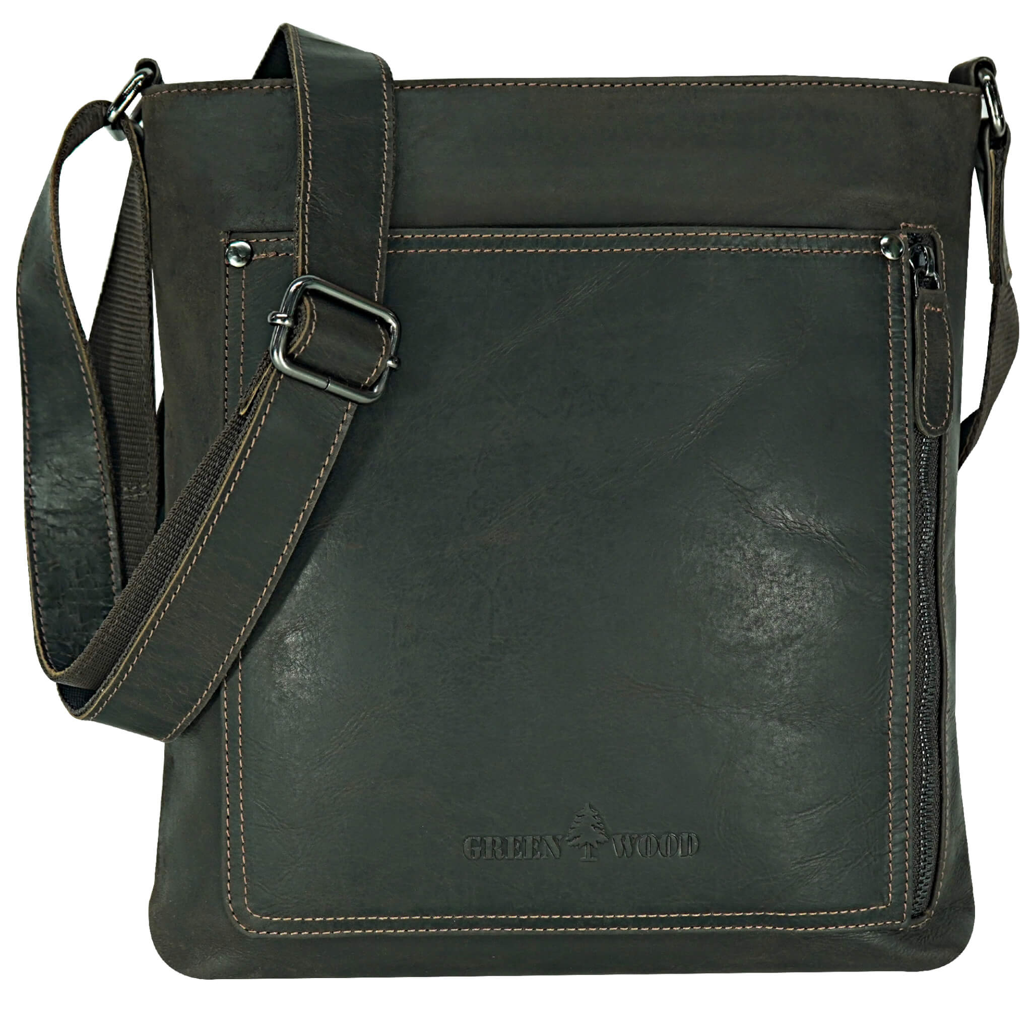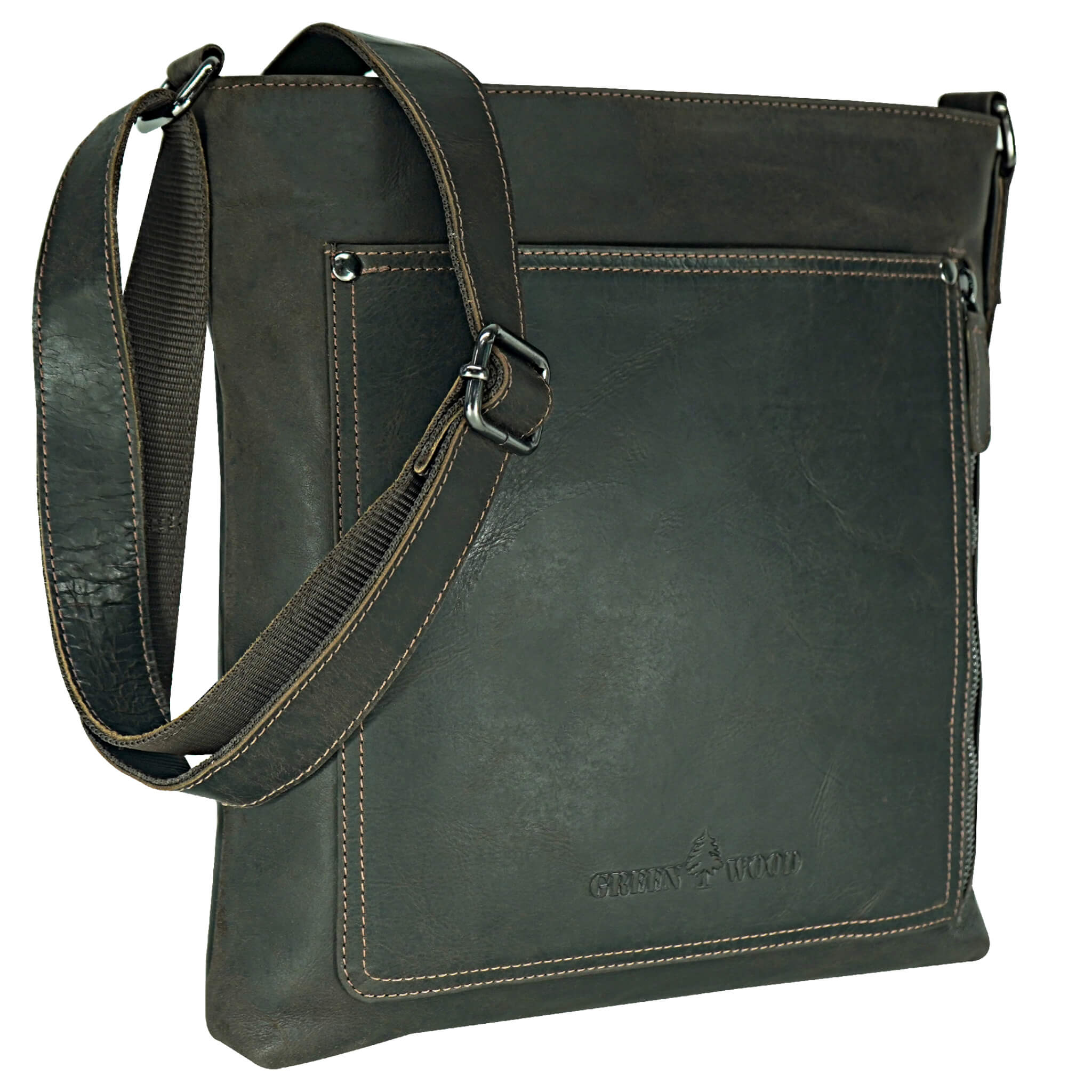 Mit der Retro-Umhängetasche von Greenwood "Bree" können Sie Ihr iPad oder Tablet bequem und stylish transportieren. Dieses hochwertige Lederaccessoire verfügt über ein geräumiges Hauptfach mit Reißverschluss, ein Reißverschlussfach auf der Rückseite, ein Seitenfach mit Reißverschluss vorne sowie eine offene Vordertasche. Zudem ist sie mit einem breiten (3 cm), verstellbaren Schultertragegurt ausgestattet für den besten Komfort und zusätzliche Robustheit dank Nylon-Unterfütterung. Mit dieser modernen und vintage anmutenden Tasche haben Sie immer die wichtigsten Dinge griffbereit!