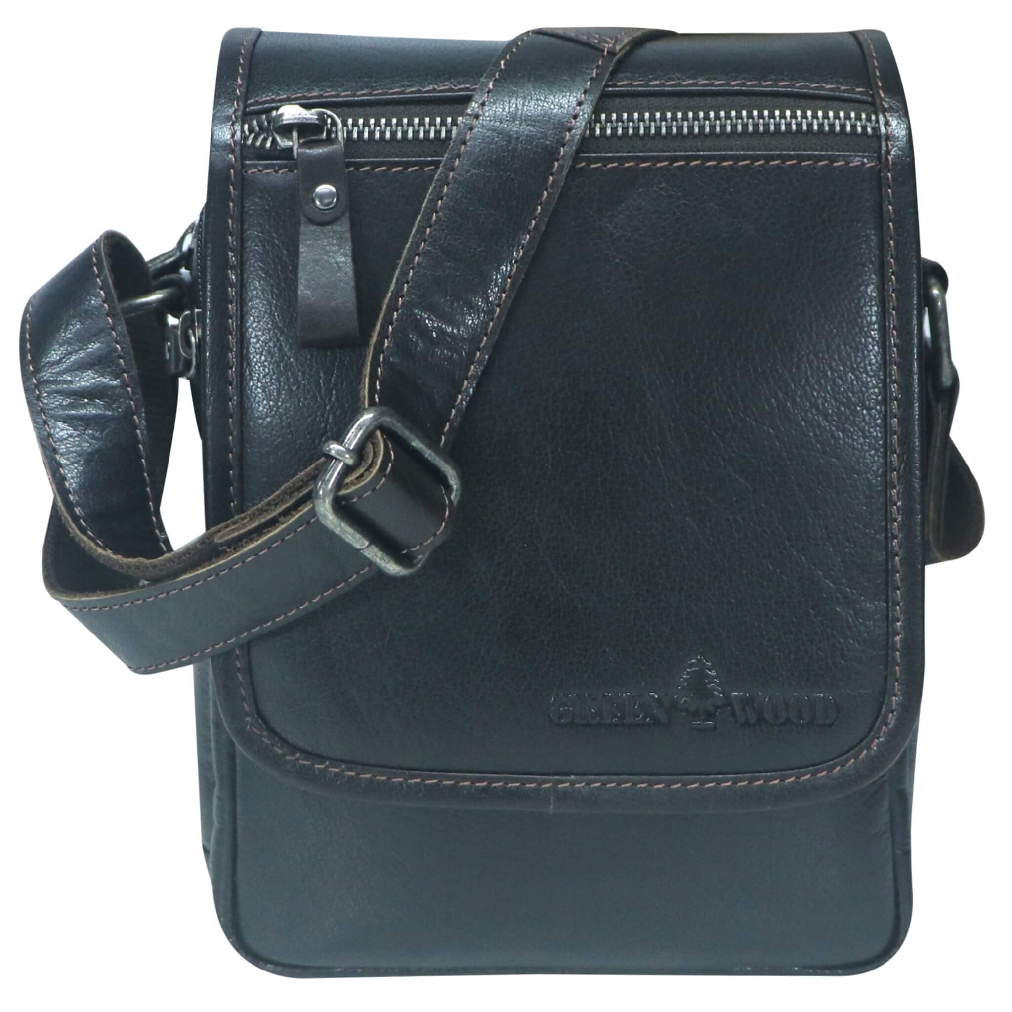 Greenwood Bath - Leder Crossbody für Damen, Herren Umhängetasche in der Farbe Schwarz.