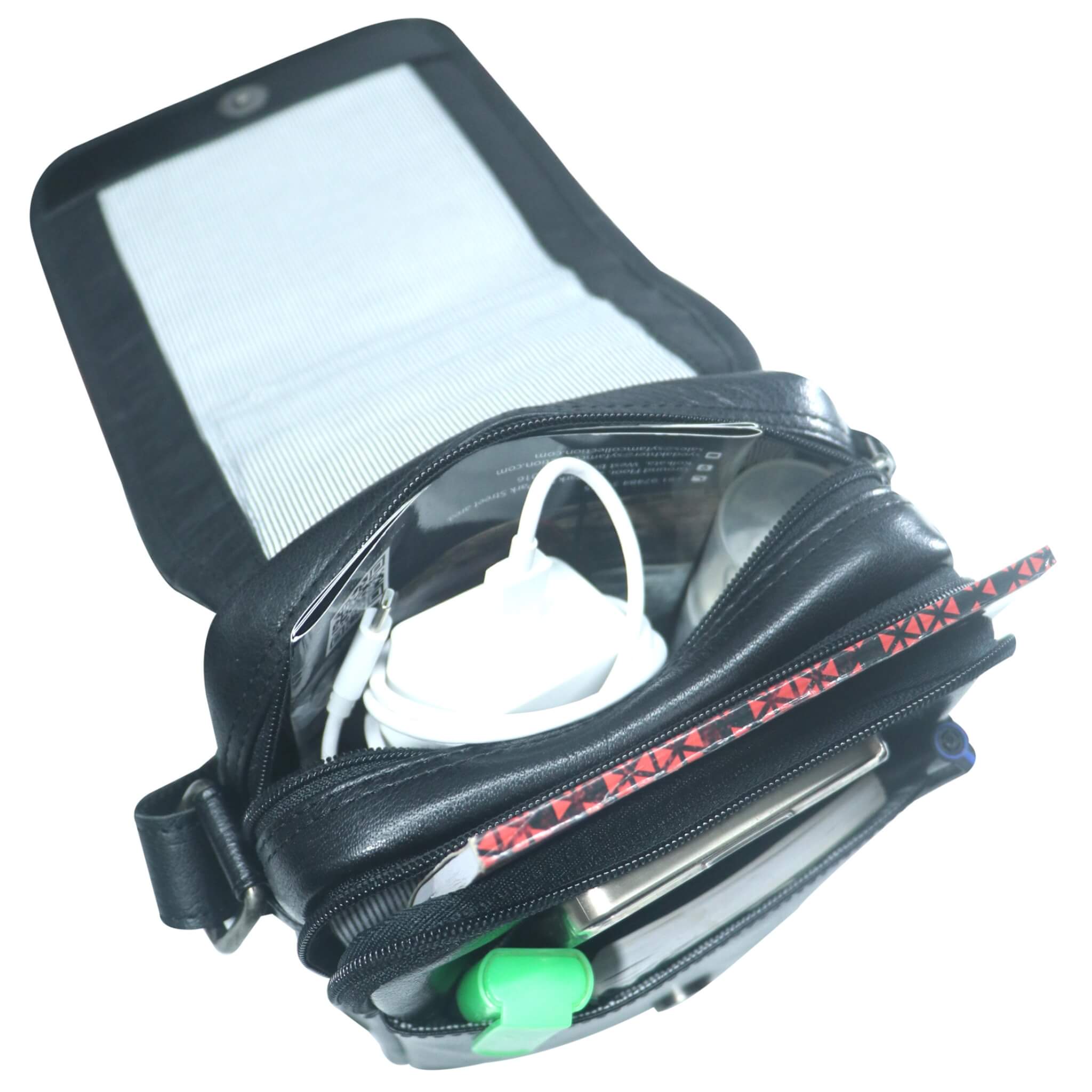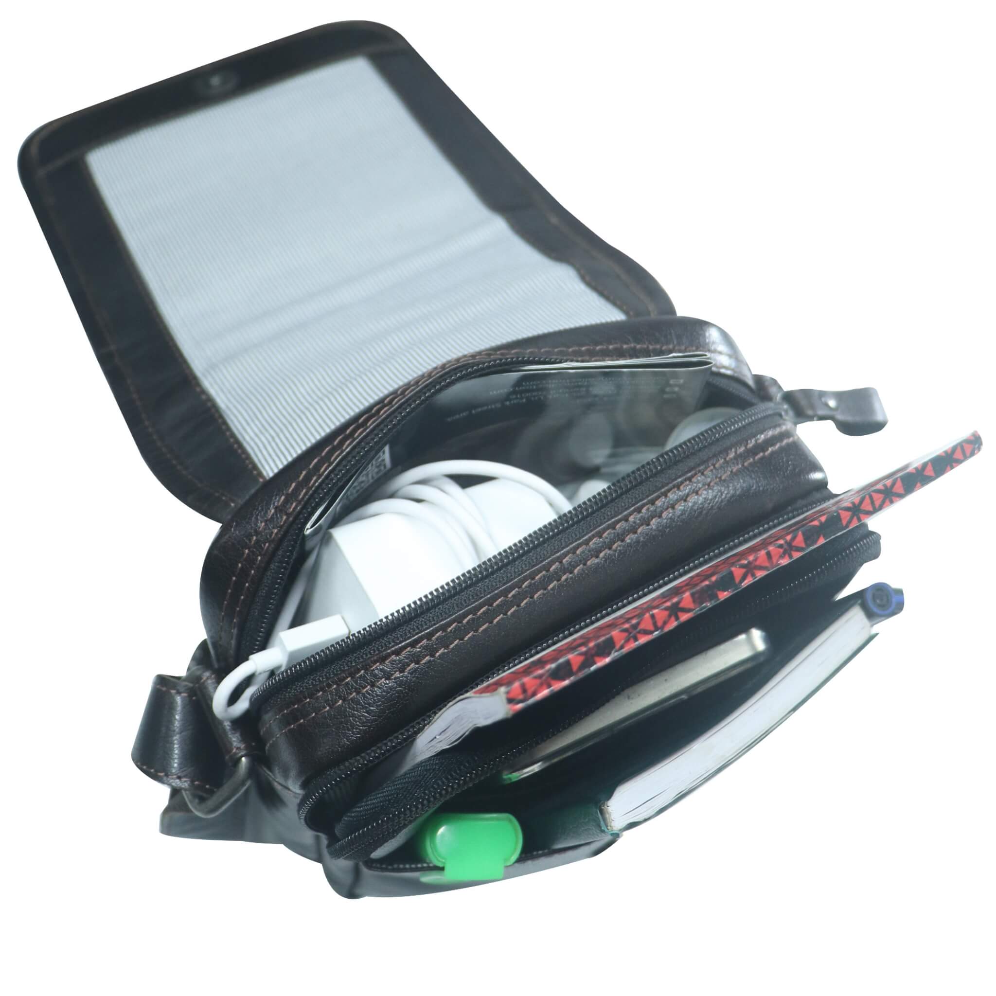 - Ein Organizer-Vorfach unter der Klappe.