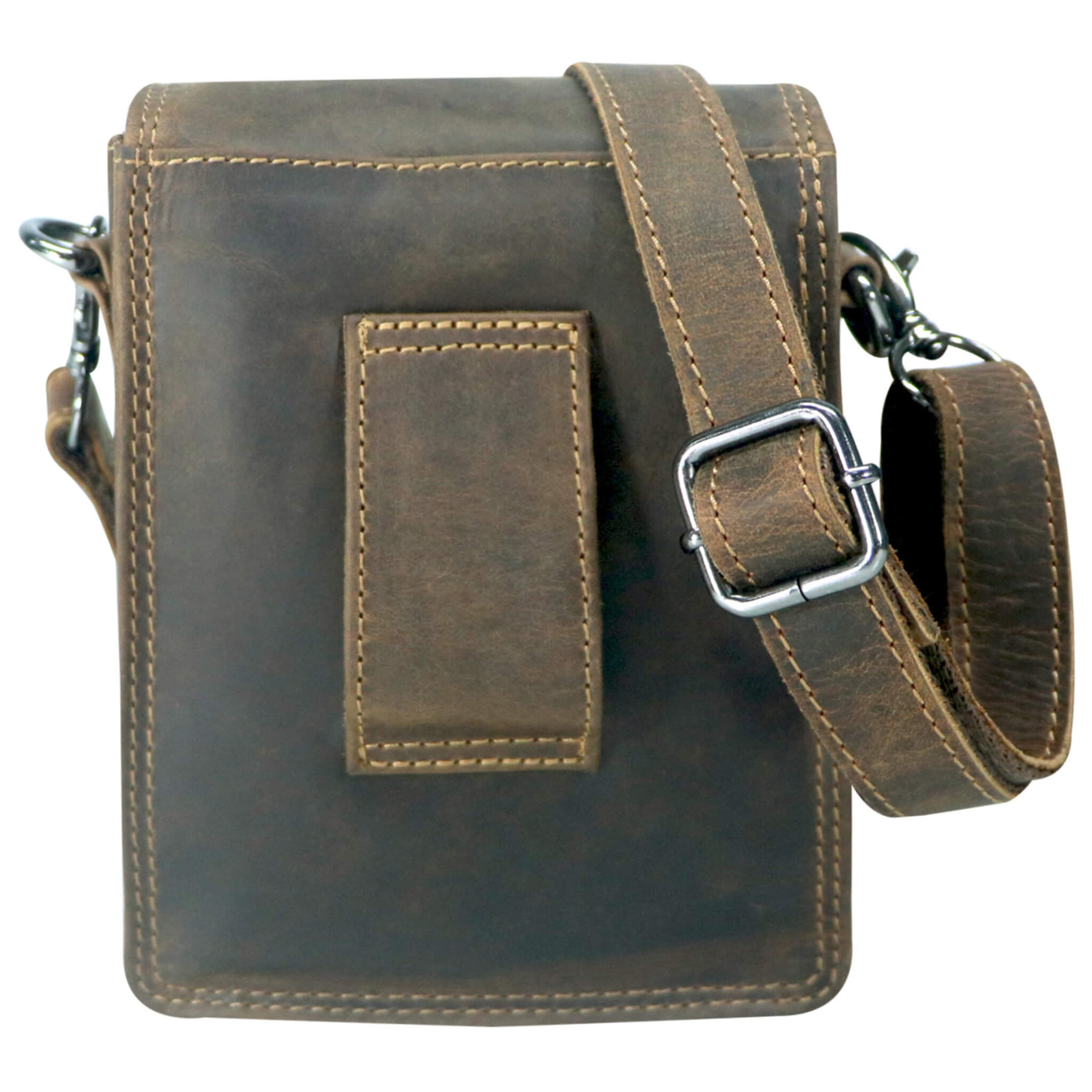 - Abnehmbarer und längenverstellbarer Schulterriemen (bis 150 cm) aus Vollleder.