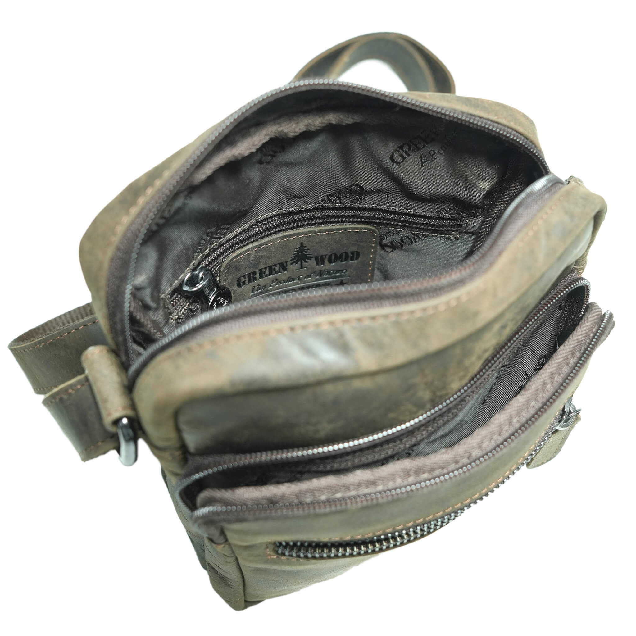 - Eingeprägtes Greenwood Logo außen, aufgenähtes Label im Hauptfach, farblich passende Nähte und Innenfutter sowie leichtgängige Reißverschlüsse.