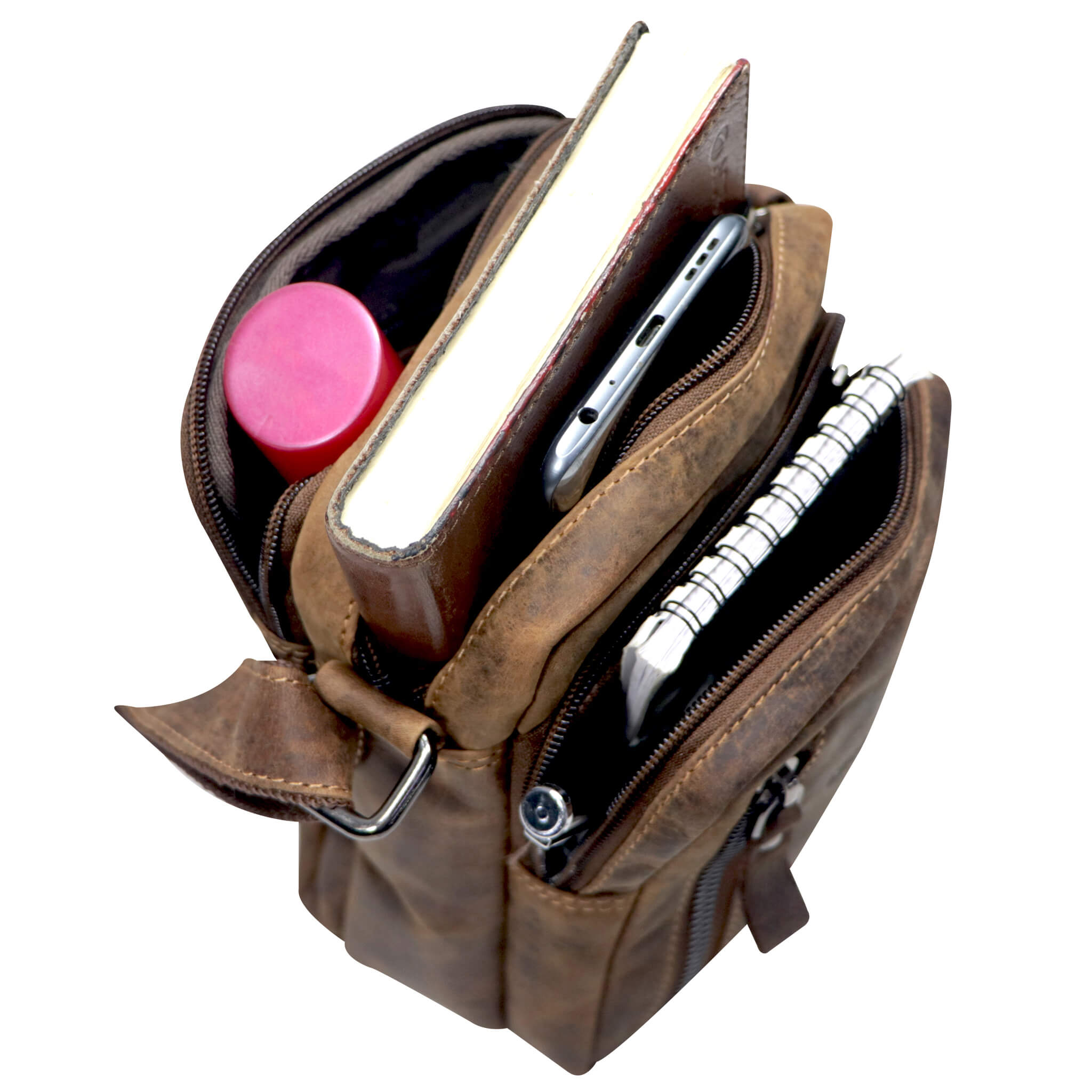 Nili Kleine Umhängetasche mit Vielen Fächern Crossbody Bag Leder