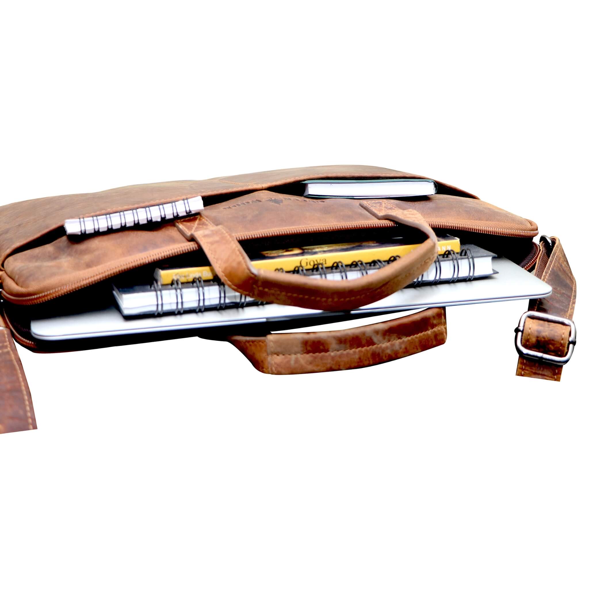 Greenwood Fred M - Laptop bag upto 14 inch for women, Leather shoulder bag for men, Laptop sleeve.