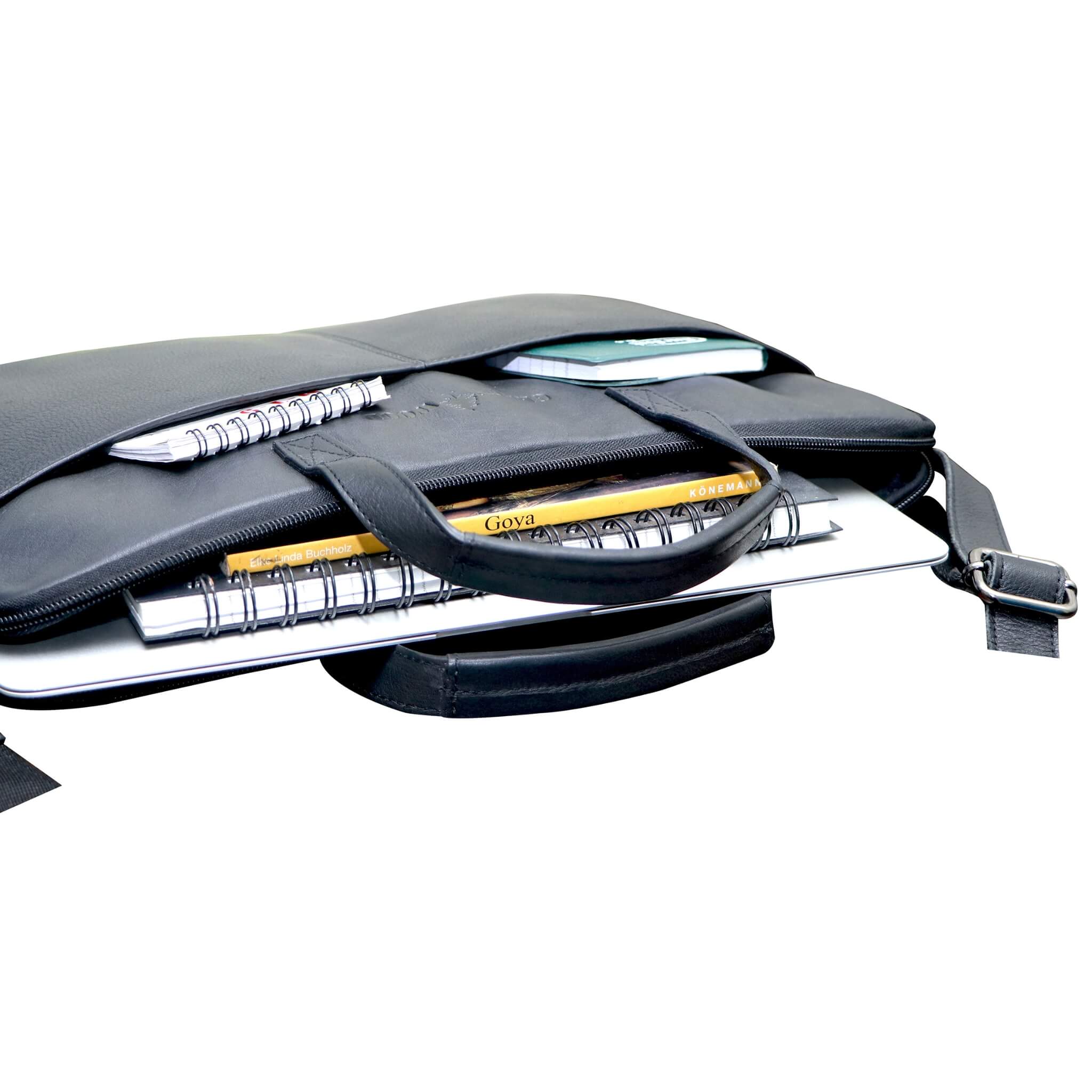 - Super slim and light laptop bag with secure and easy zip closure.