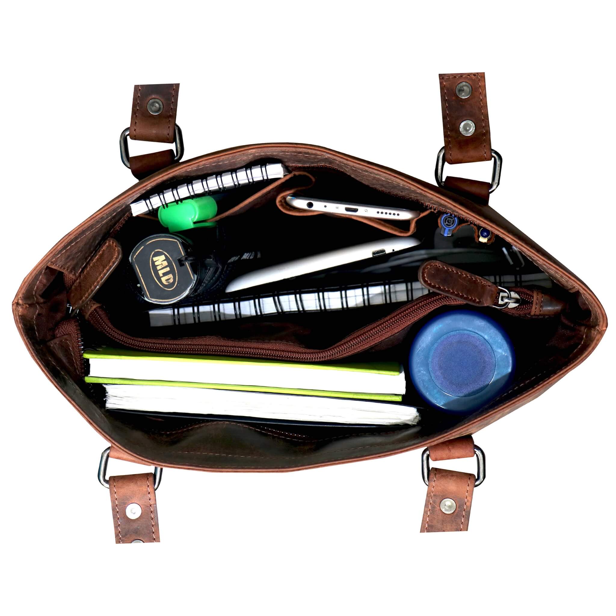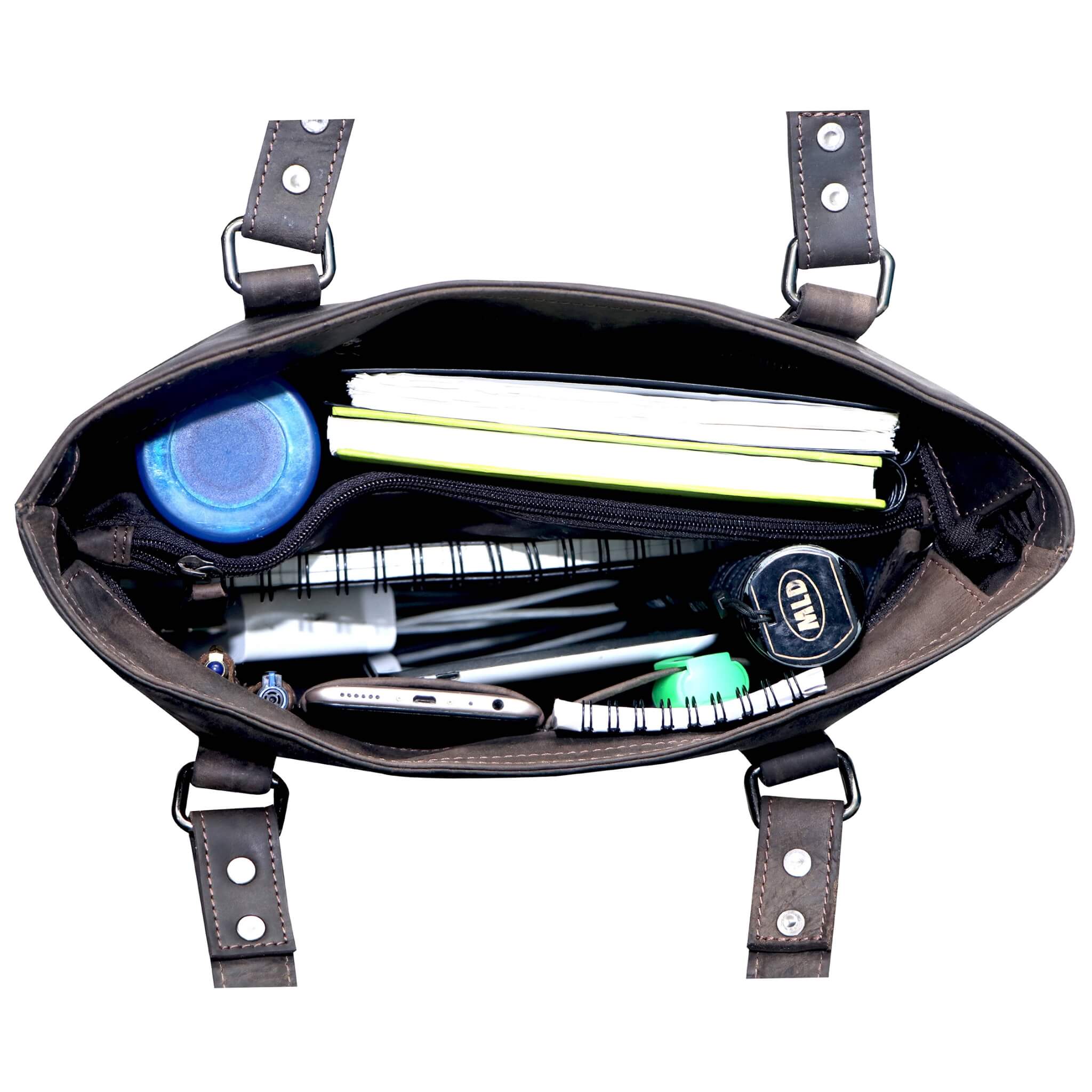 - The leather bag can be optimally used as a shoulder bag, shopper bag, handle bag, unit bag and college bag.