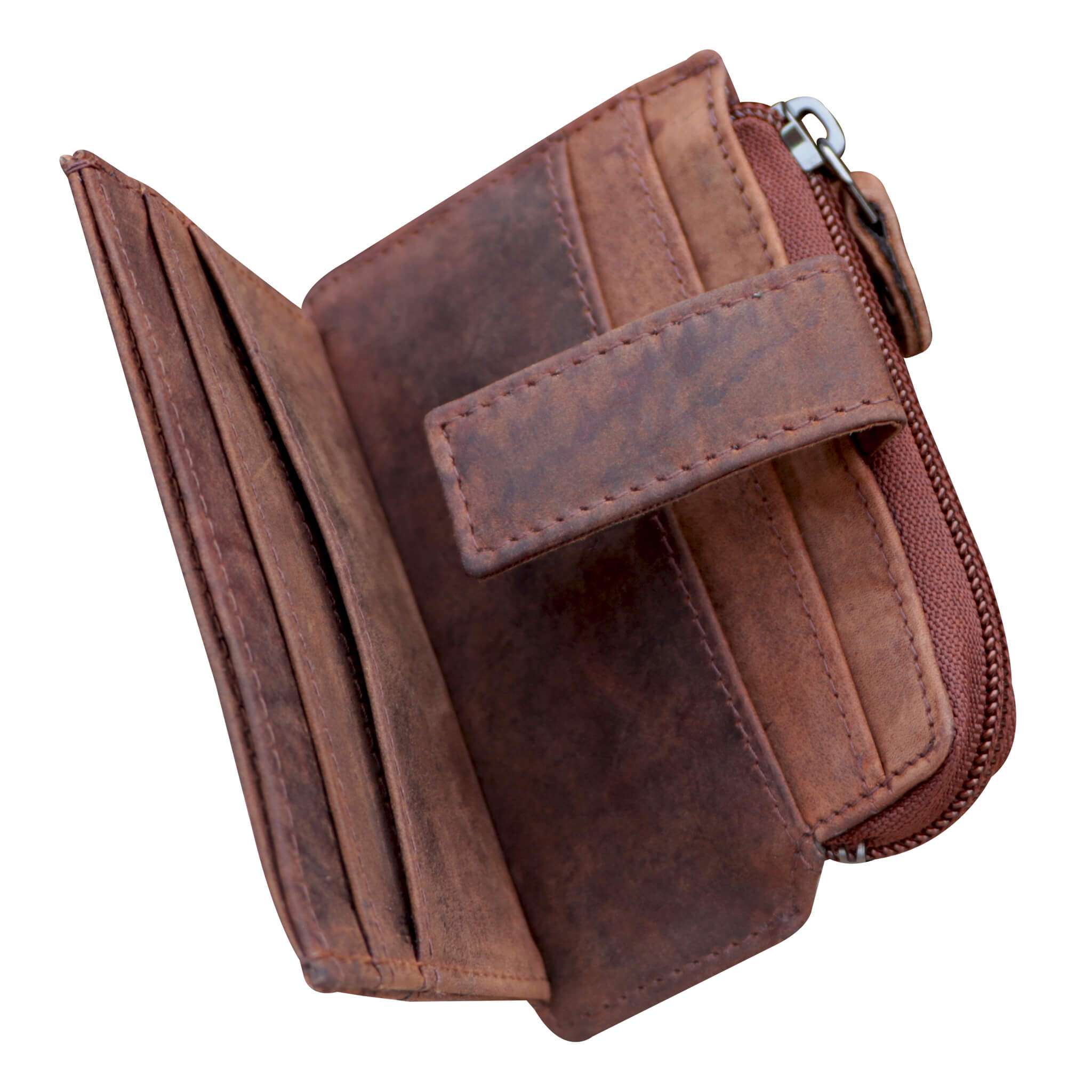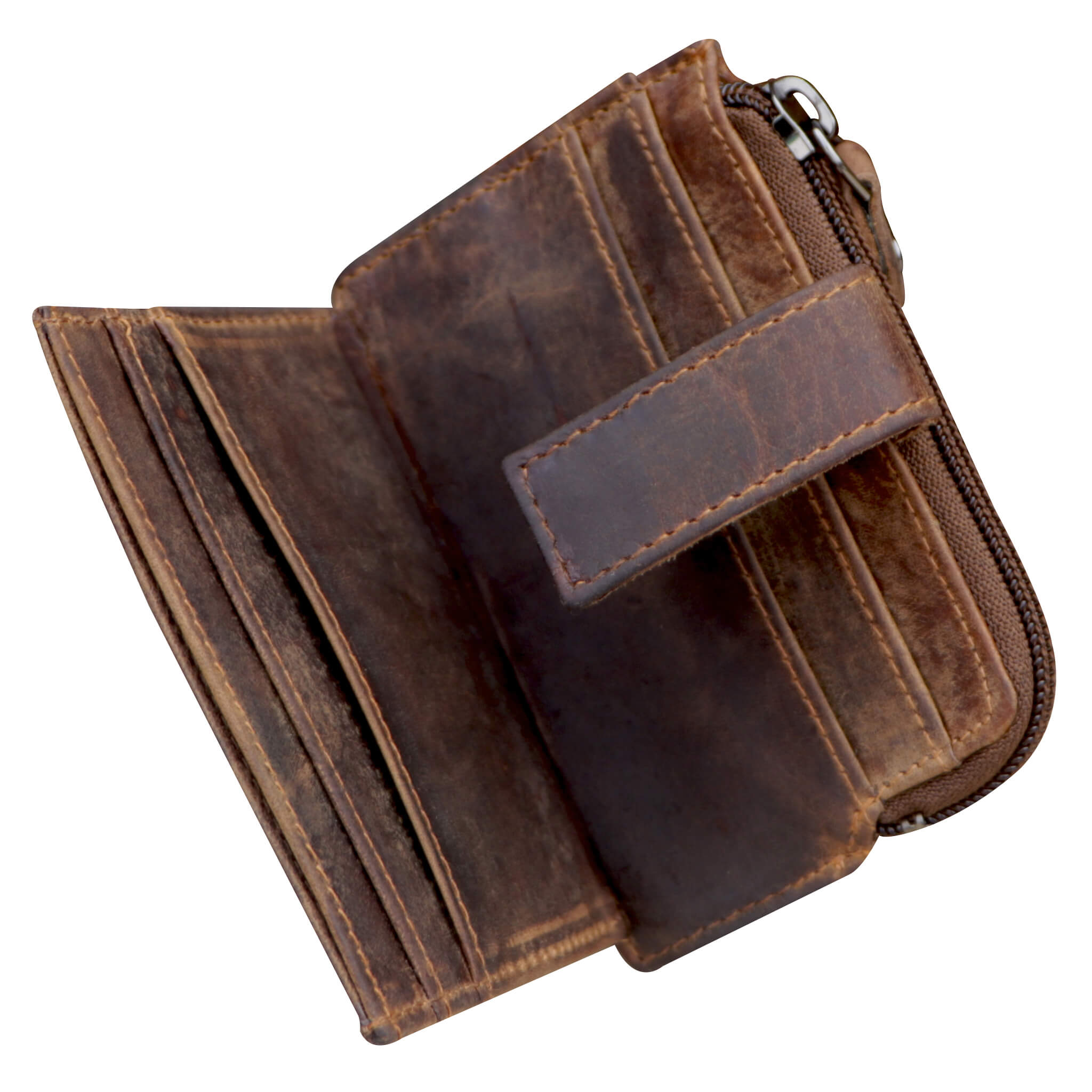 - 6 x Kartenfächer und 1 x Steckfach für Geldscheine - verschließbar mit Druckknopfverschluss.